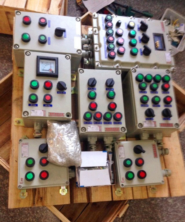 二、防爆控制箱。此類(lèi)防爆控制箱型號(hào)為BXK52系列,其中X是箱體的簡(jiǎn)稱(chēng),K為控制的縮寫(xiě)。防爆控制箱主要用于控制各類(lèi)電機(jī)或者輔助電器,主要由防爆按鈕和防爆指示燈組成。防爆控制箱箱體材料一般分為三種,即鋁合金、鋼板焊接和不銹鋼焊接。防爆控制箱箱體除安裝上述按鈕和指示燈外,還可以根據(jù)客戶(hù)要求安裝轉(zhuǎn)換開(kāi)關(guān)、電流表、電壓表以及制定的各類(lèi)儀表。